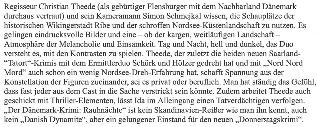 TV Movie | 90 Minuten | RED Gemini 4K © 2020 | EIKON Media | ARD | Regie: Christian Theede | Kamera: Simon Schmejkal Erstausstrahlung: 14.10.2021 Quote: 6.56 Mio MA: 23.2 %